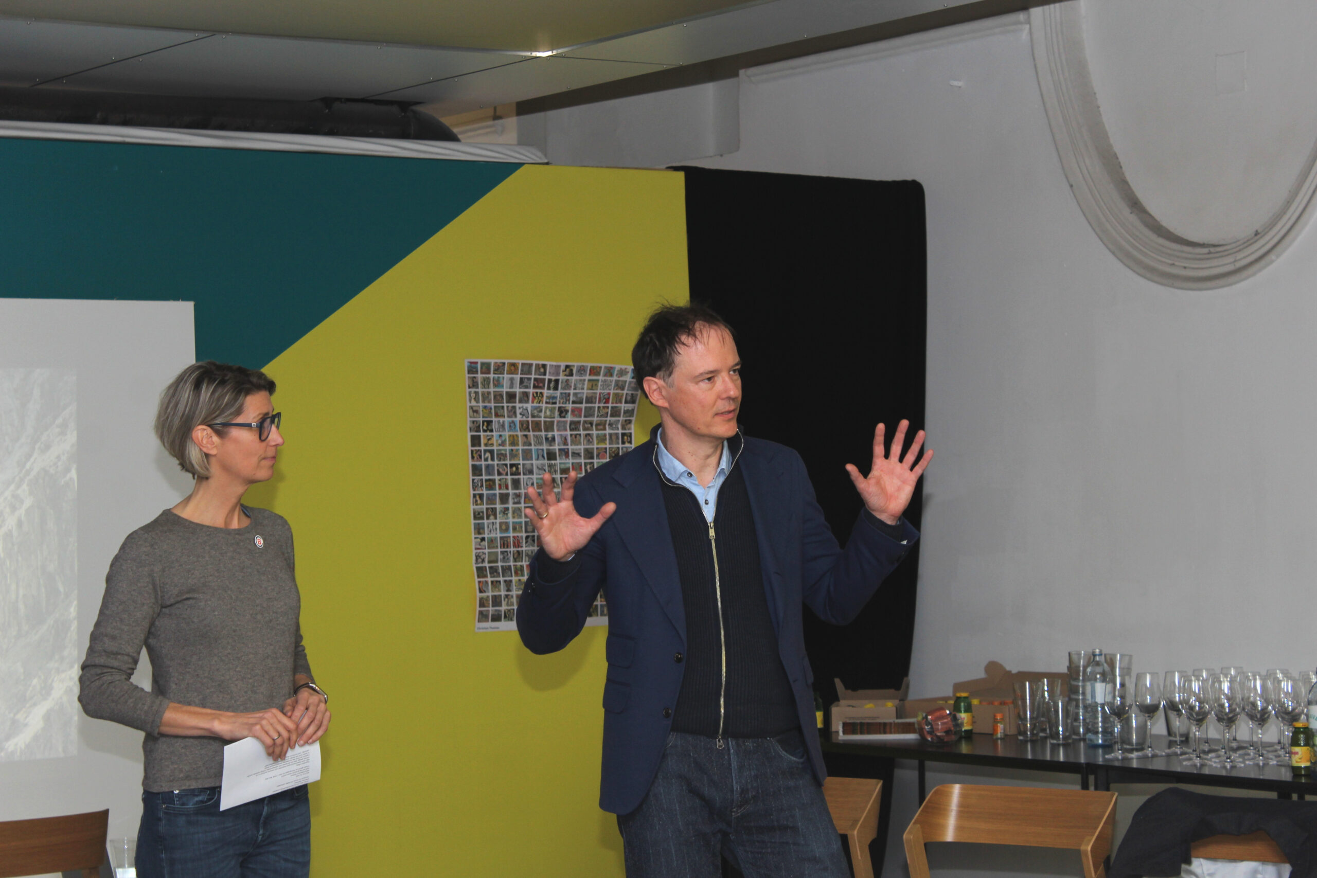 Bei einem Glas Wein von Domaine Pöttelsdorf, einem Almdudler oder Ottakringer Bier wurde der Austausch selbst nach der Bowl weitergeführt. Kulinarisch versorgt wurden die Teilnehmer:innen von Irmgard Querfeld und Manner.