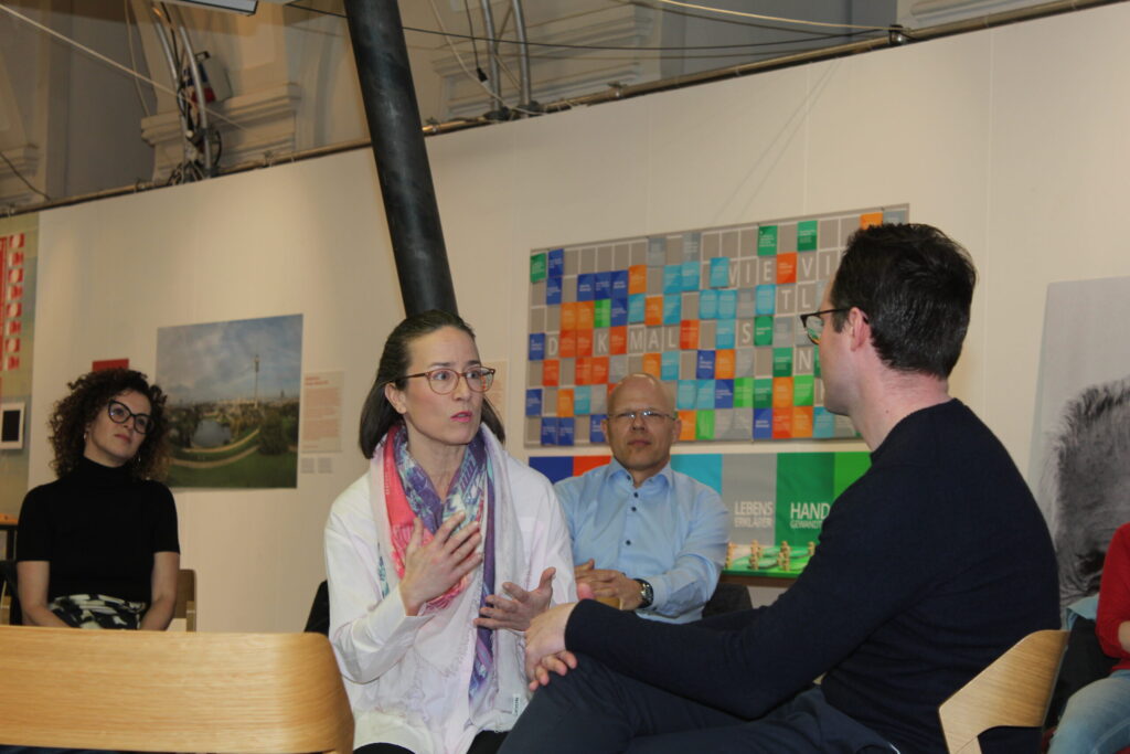 Das Format der Bowl bietet einen Rahmen für eine geordnete Diskussion: Im äußeren Kreis wird zugehört, im inneren – der Fishbowl – diskutiert. Innen muss immer ein Sessel frei bleiben, es darf jederzeit von außen nach innen und umgekehrt gewechselt werden. In diesem dynamischen Setting entstanden interessante Ideen und Gespräche – Ansichten, Erfahrungen und Empfehlungen wurden rege geteilt.